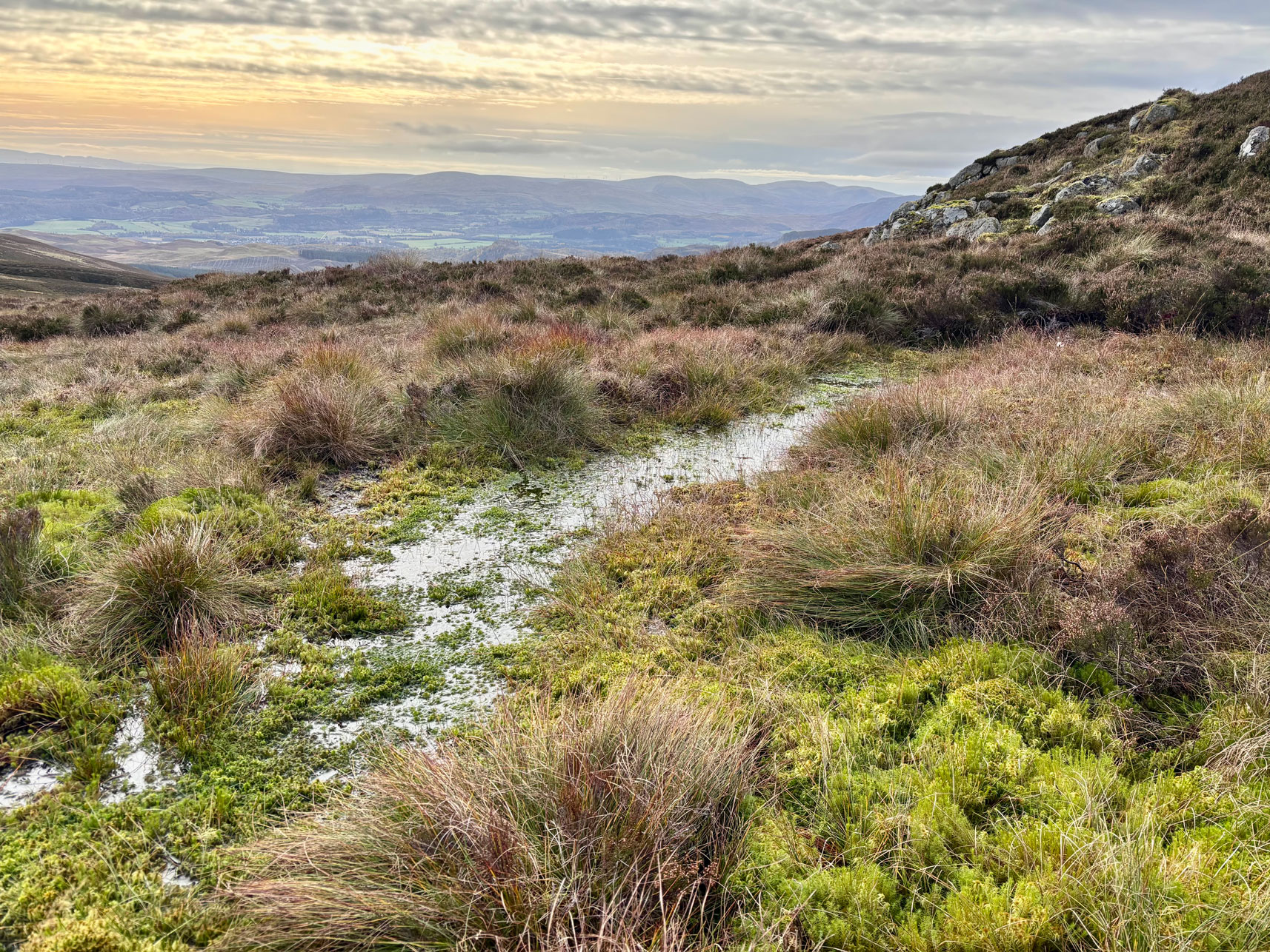The project is located near Comrie on Carroglen Estate, an operating farm at the gateway to the highlands of Scotland. It involves restoring historic moorland across five subsites. This includes installing peat dams, reshaping moorland ridges and turfing exposed areas.